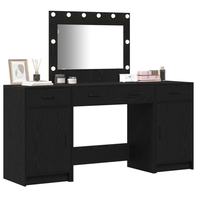 vidaXL 3-delni set toaletne mizice z LED, črna inženirska lesa