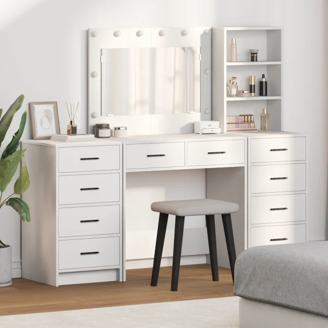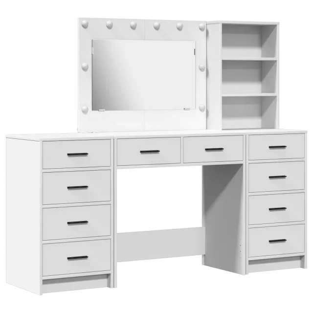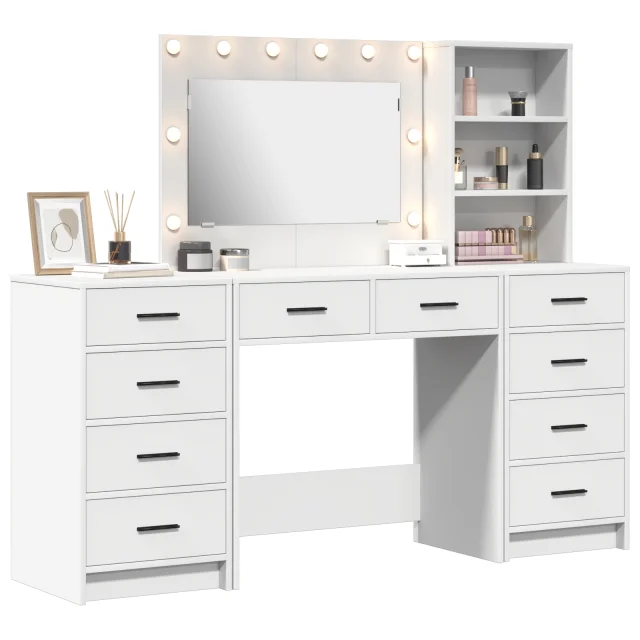 Ta enota visokega reda je vse o praktičnosti in stilu - idealna za spalnico ali toaletni prostor. S svojo elegantno belo obdelavo, ogromnim prostorom za shranjevanje in vgrajeno osvetlitvijo z ogledalom, ustvarja prijetno okolje, ki ti olajša pripravo.