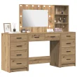 vidaXL 3-delni set toaletne mizice z LED umetniškim hrastovim inženirskim lesom