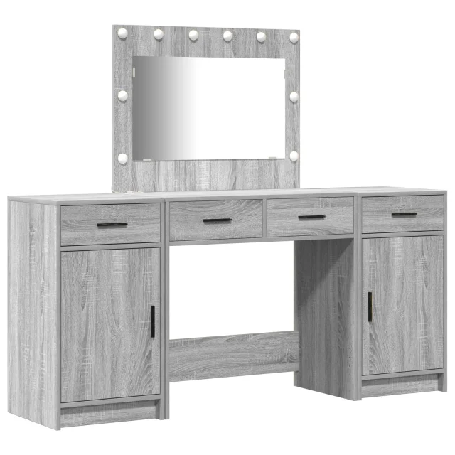 Ta set toaletnih mizic kombinira funkcionalnost in stil, kar ga naredi nujen del vsake spalnice ali oblačilnice. Z moderno zasnovo v chic sivi sonomi izboljšuje tvojo dekoracijo in ustvari organizirano območje za ličenje in nego.