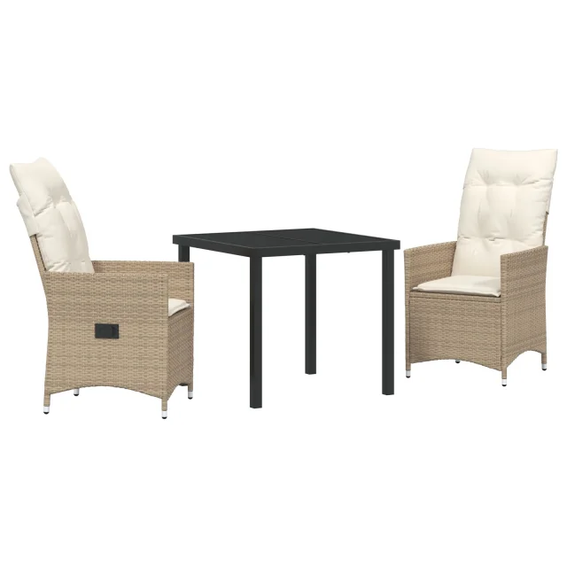 vidaXL 3-delni set vrtne jedilnice z blazinami Bež poli ratan