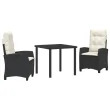vidaXL 3-delni set vrtne jedilnice z blazinami Črn Poli ratan