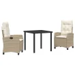 vidaXL 3-delni set za vrtnarsko jedilno mizo z blazinami, bež poli ratan
