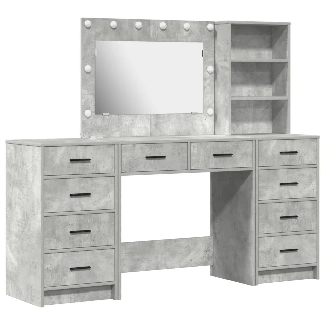vidaXL 3-delni toaletni komplet z LED lučjo, betonsko siva inženirski les