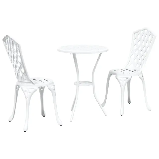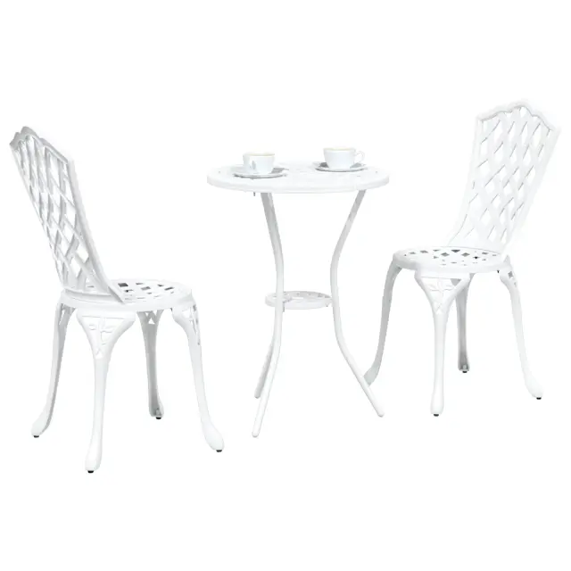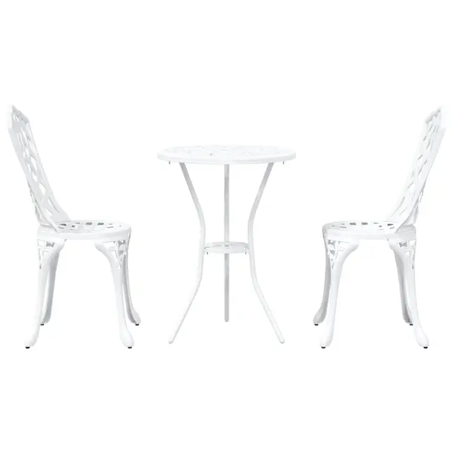 Ta zunanja jedilnica za 2 ustvari prijetno vzdušje, idealno za romantične obroke ali sproščajoč brunch na tvojem balkonu ali v vrtu. Set, ki vključuje okroglo mizo in dva stilna stola, čudovito povezuje tradicionalno eleganco z modernim stilom, kar ga naredi odličnega za popestritev zunanjega prostora.