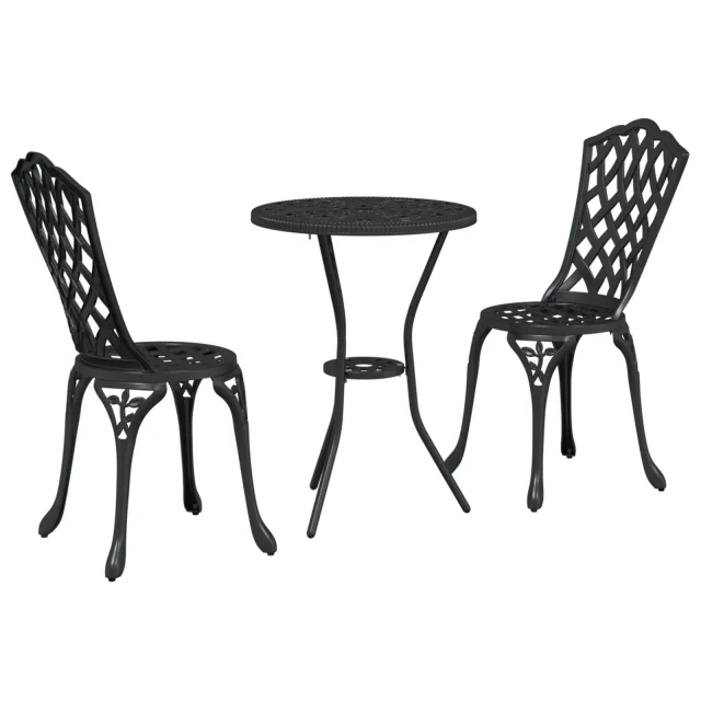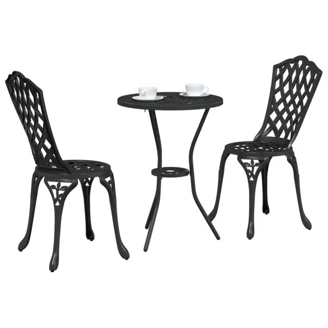 Ta kompaktna zunanja jedilna garnitura za dva je super za prijetne obroke in sproščene trenutke. Njena elegantna okrogla zasnova s klasičnim črnim zaključkom doda odličen občutek v vsak prostor. Je lahka, a močna, zato jo je lahko premikati in še vedno ostaja stabilna med jedjo.