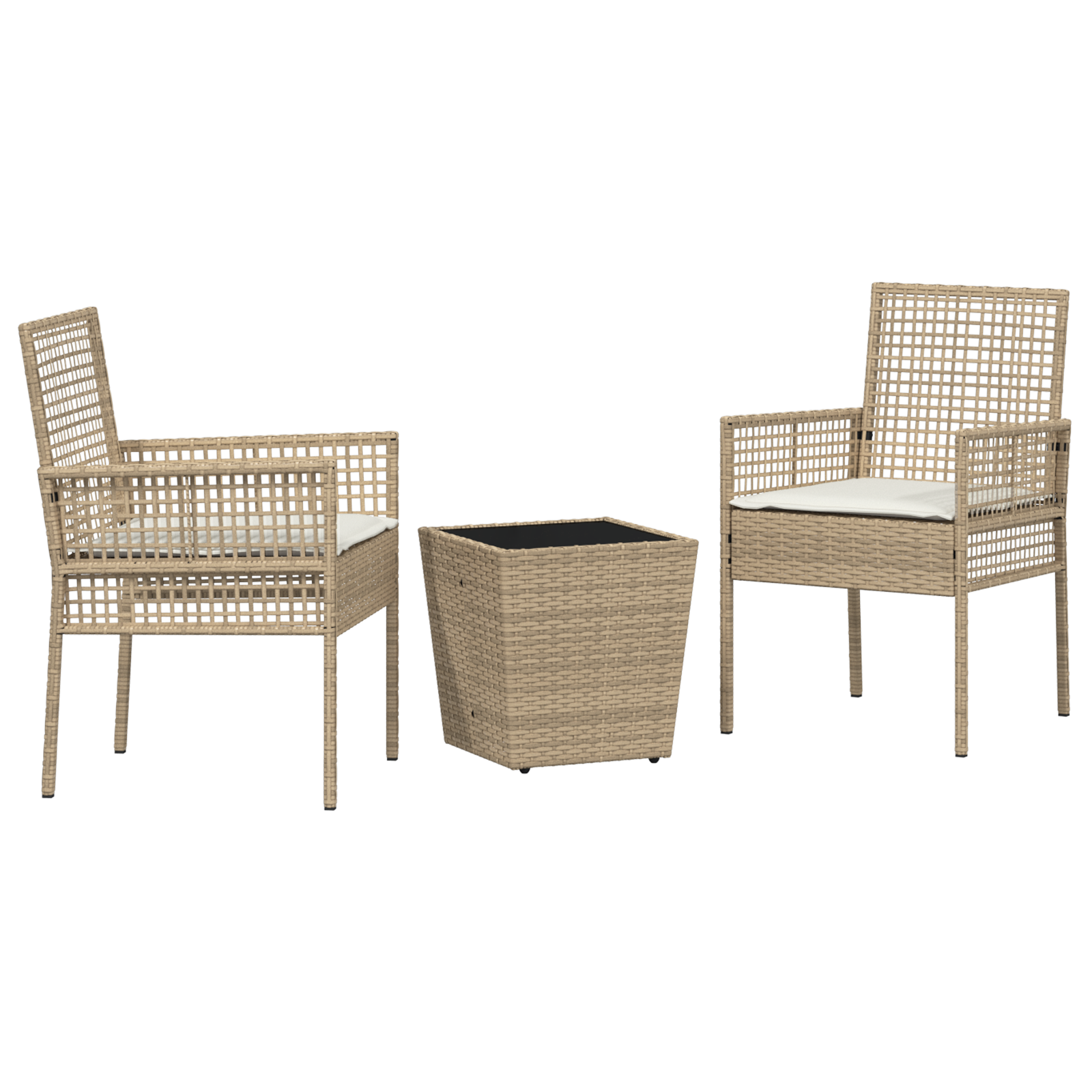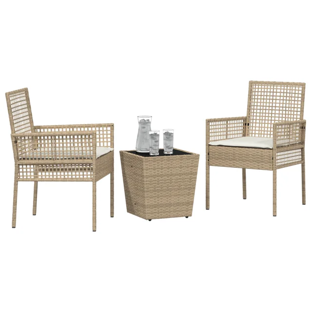 vidaXL 3-delni vrtnarski bistro set s blazinami bež poli ratan