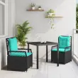 vidaXL 3-delni vrtnarski jedilni set črn poli ratan