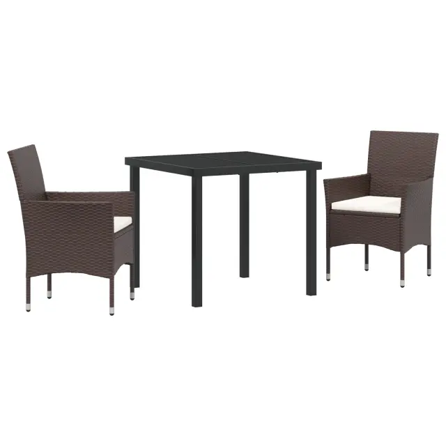 vidaXL 3-delni vrtnarski jedilni set Rjava Poli Ratan