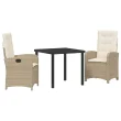 vidaXL 3-delni vrtnarski jedilni set z blazinami Bež poli ratan