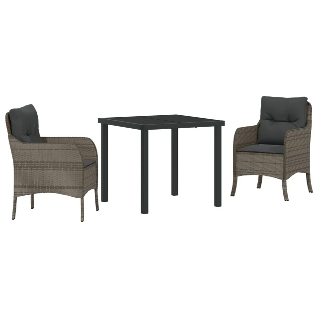 vidaXL 3-delni vrtnarsko jedilni set z blazinami siva Poli ratan