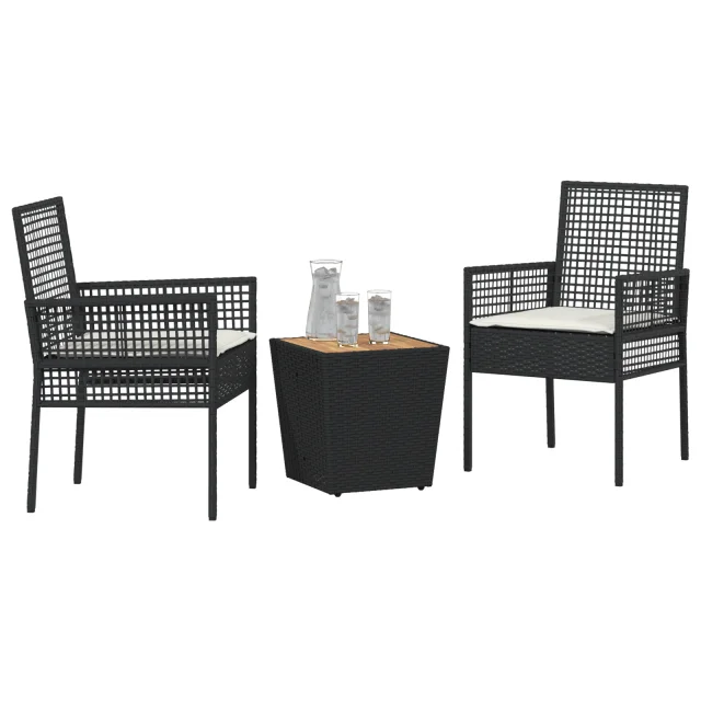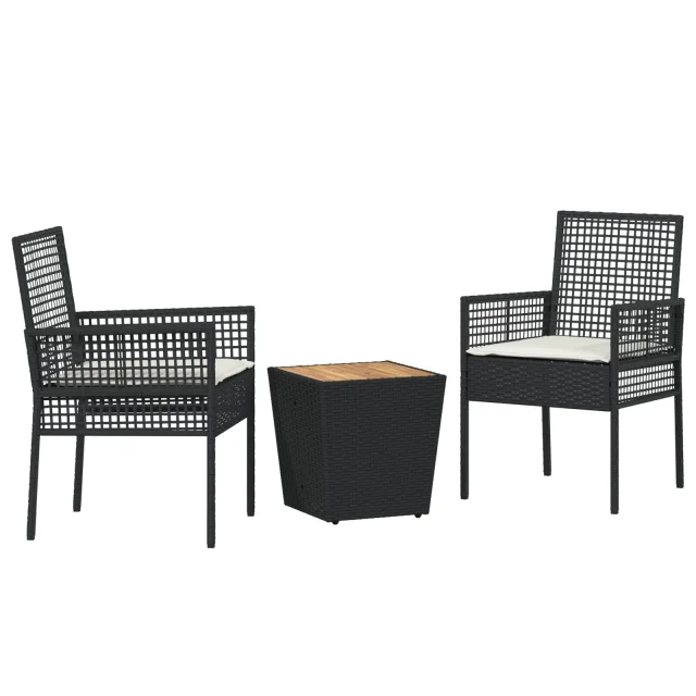 vidaXL 3-delni vrtni bistro komplet s blazinami črn poli ratan