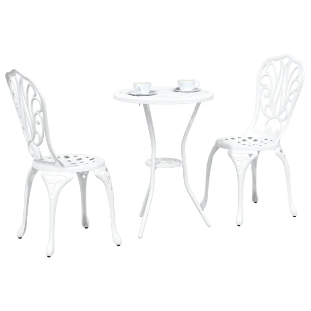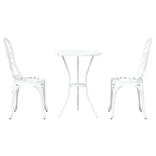 Ta okrogli jedilni set za zunaj ustvari prijeten prostor za dva, kar je idealno za uživanje v obrokih na sončnem balkonu ali patio. S svojim stilskim belim zaključkom in trdno aluminijasto konstrukcijo je ta vsestranski set primeren za različne zunanje stile, hkrati pa ostaja trdna in moderna izbira.