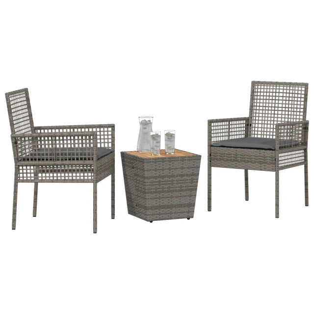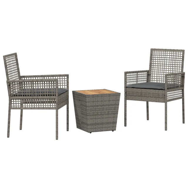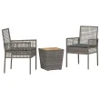 vidaXL 3-delni vrtni bistro set s blazinami sivo poli ratan