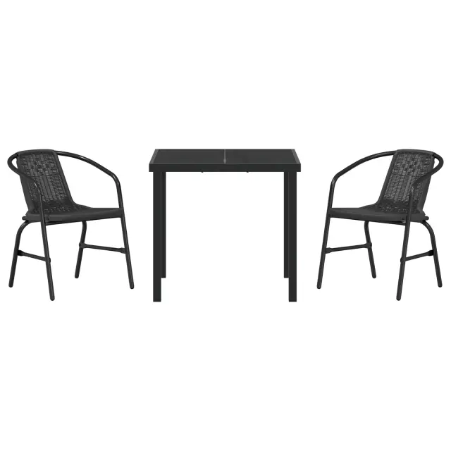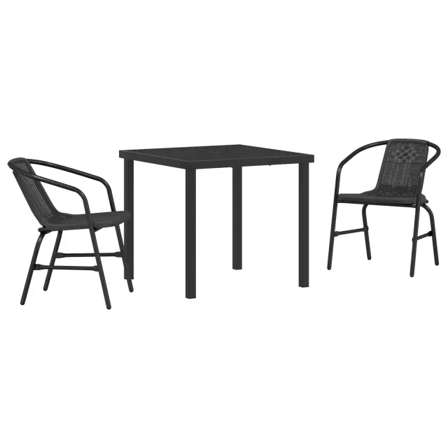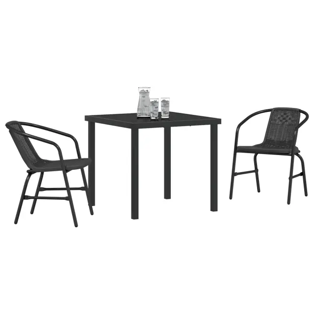 vidaXL 3 Delni vrtni jedilni set Črn Poli ratan