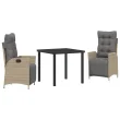 vidaXL 3-delni vrtni jedilni set Bež Poli ratan
