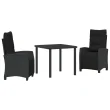 vidaXL 3-delni vrtni jedilni set, črn poli ratan