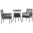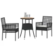 vidaXL 3 delni vrtni jedilni set črn poli ratan