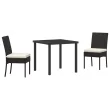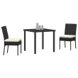 vidaXL 3-delni vrtni jedilni set črn poliratanski