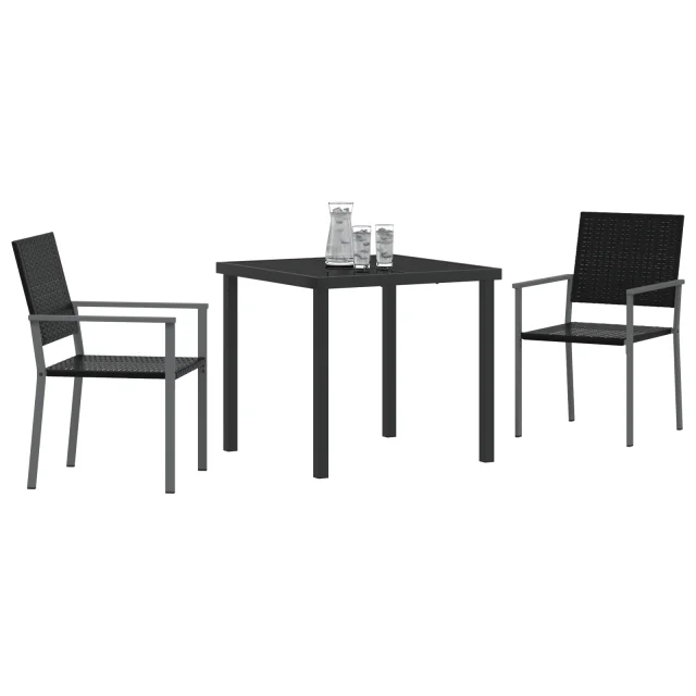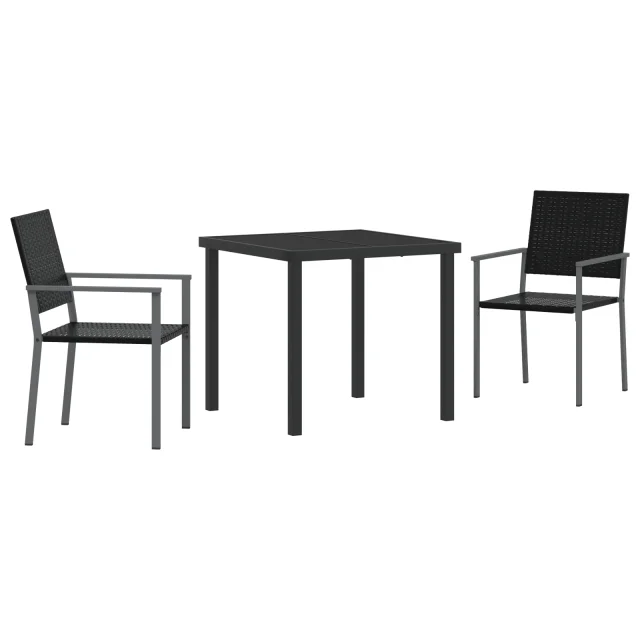 vidaXL 3-delni Vrtni Jedilni Set Črni Poly Rattan