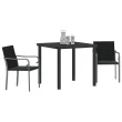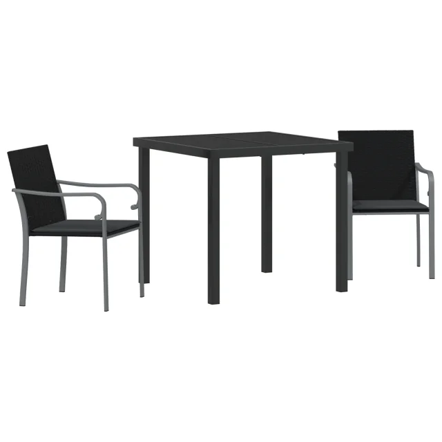 vidaXL 3-delni vrtni jedilni set s blazinami, črn poli ratan