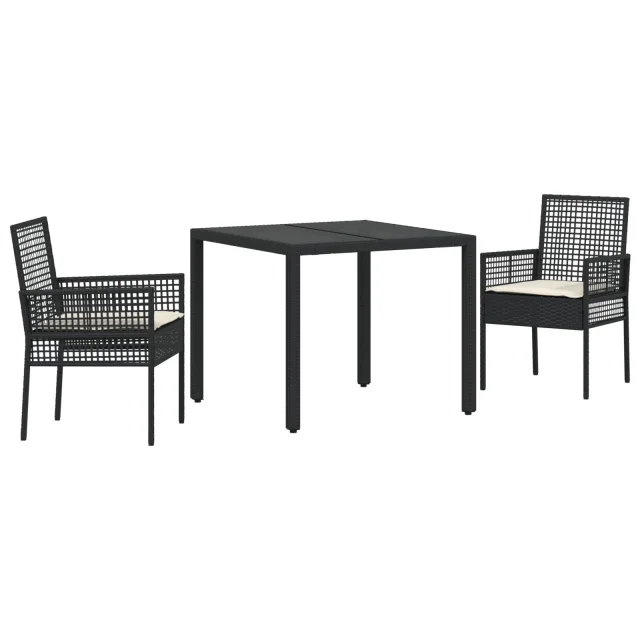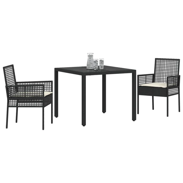 vidaXL 3-delni vrtni jedilni set s blazinami črne barve iz poli ratana