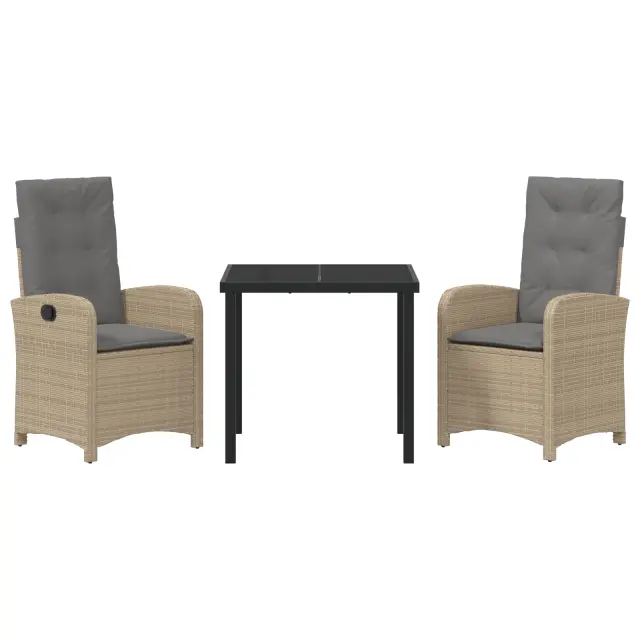 vidaXL 3-delni vrtni jedilni set z blazinami bež poli ratan