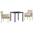 vidaXL 3-delni vrtni jedilni set z blazinami bež poli ratan