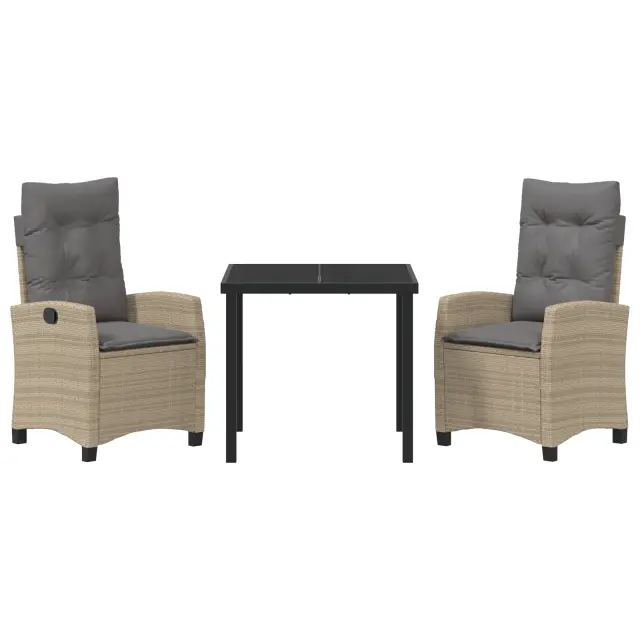 vidaXL 3-delni vrtni jedilni set z blazinami bež poli ratan