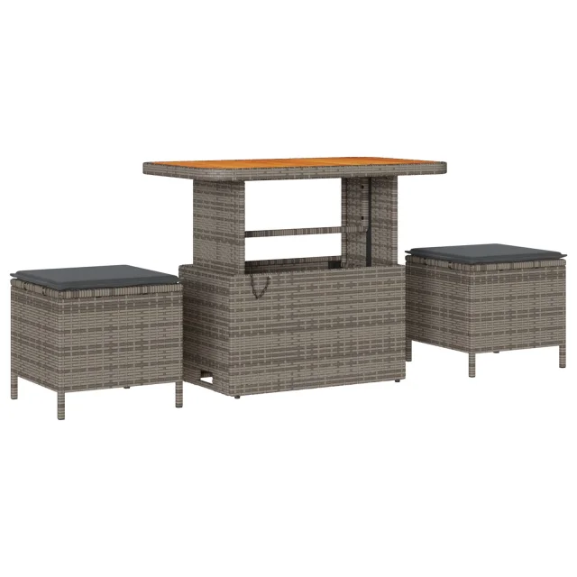 vidaXL 3-delni vrtni jedilni set z blazinami siva poli ratan akacija
