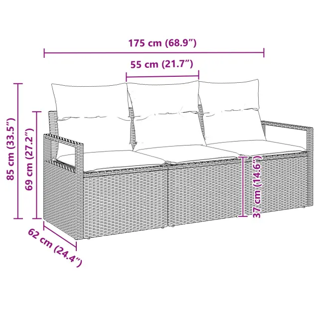 Ta komplet zunanjih kavčev ti ponuja stilsk prostor za sproščanje, idealen za vrtove ali balkone. Tridelna postavitev nudi veliko prostora za druženje s prijatelji ali družino, meša eleganco in praktičnost v sodobnem dizajnu, ki se ujema z različnimi stili vrtov.