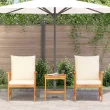 Moderna zunanja jedilna garnitura je odlična izbira za zunanje druženje, saj ima dva prostorna naslonjala ob stilski mizi. Njena kremna bela barva in gladka tekstura jo naredijo prijetno izbiro za vsak vrt ali balkon, vabi prijatelje in družino na sproščene obroke ali majhne srečanja.