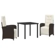 vidaXL 3-delni vrtnik jedilni set z blazinami rjav poli ratan