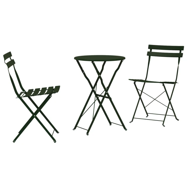 Ta kompaktna okrogla zunanja jedilna garnitura združuje sodoben stil in praktičnost. Super je za majhne balkone ali terase. S svojo elegantno zasnovo in trdnim jeklenim okvirjem, dobite dva udobna stola ter stilno mizo, ki bosta popestrila vaš zunanji prostor in nudila udobno mesto za obroke ali sproščanje.