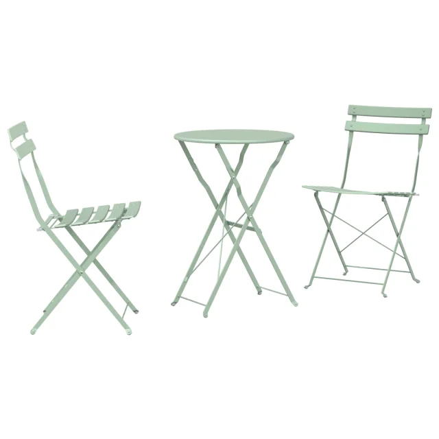 Ta trendovski okrogli set zunanjega pohištva je super dodatek za tvoj balkon ali vrtno teraso, nudi udobno sedenje za dva. Svetlo mint barva s sleek sivo barvo ustvarja svež in vabljiv vzdušje, kar je idealno za obedovanje in sprostitev na prostem.
