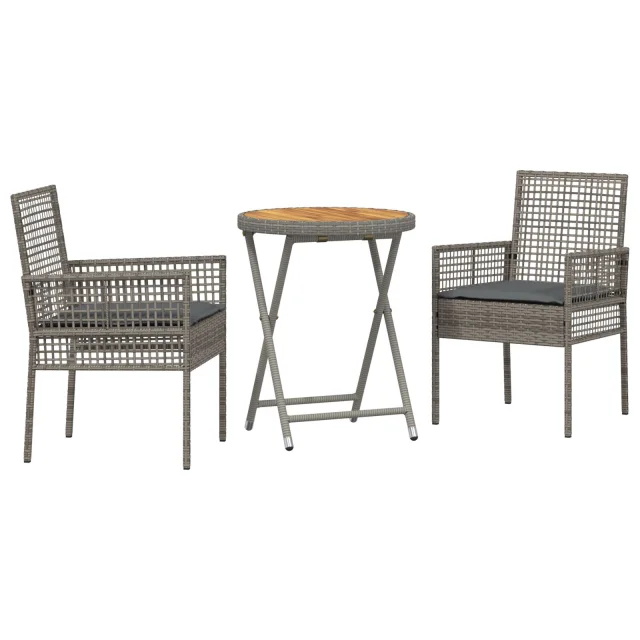 vidaXL 3-delni zunanjega bistro seta s blazinami siva poly ratan