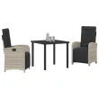 vidaXL 3-delni zunanji jedilni set z blazinami iz svetlo sivega ratana