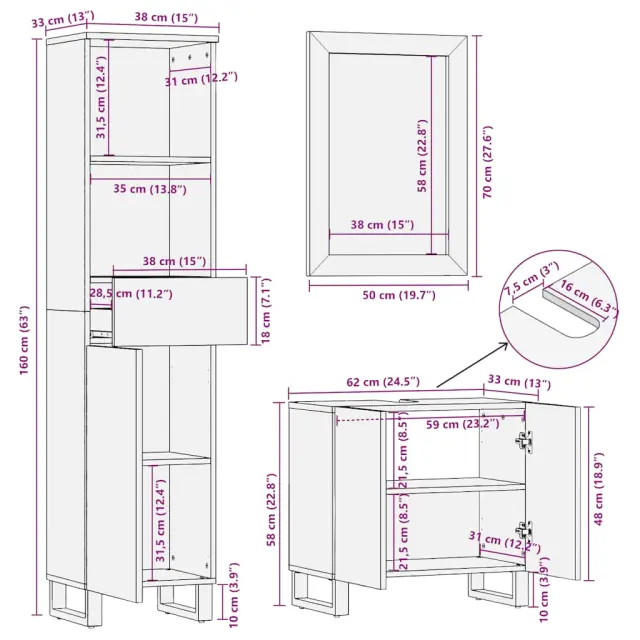 vidaXL 3 kosi kopalniškega pohištva Set črni masivni les Mango