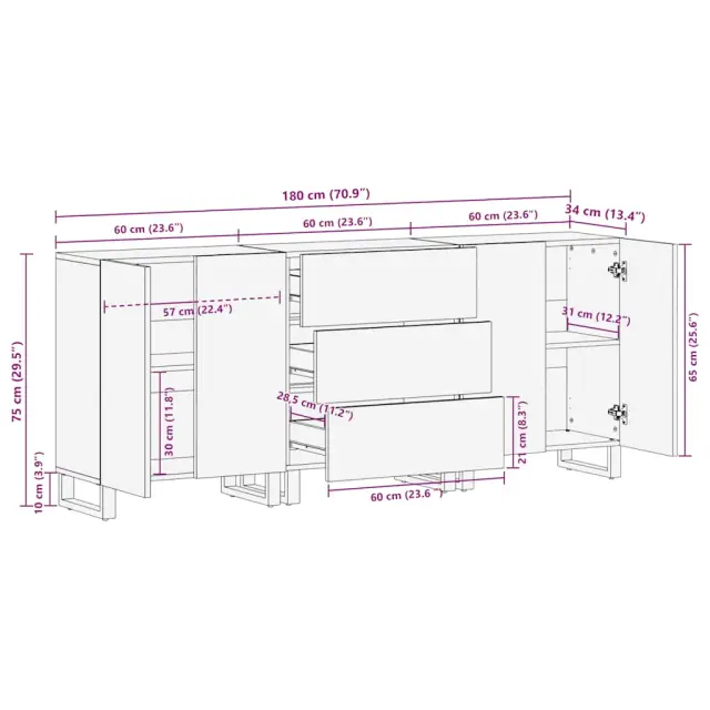 vidaXL 3 kosi kredence črna 60x33x75 cm masivni les Mango