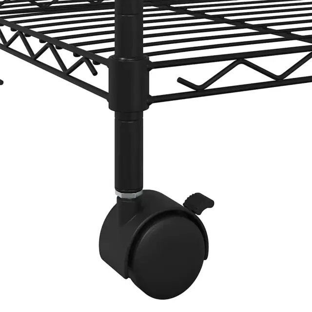Stojalo s policami je izdelano iz železa s črnim premazom in je izjemno vzdržljivo! Industrijski regal ima 4 kolesa za enostavno premikanje.