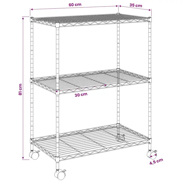 To mrežasto stojalo s policami je idealna rešitev za shranjevanje doma in drugje, na primer v kuhinji, pralnici, kleti, kopalnici, pisarni, garaži, delavnici ali v katerem koli drugem prostoru, v katerem potrebujete dodaten prostor za shranjevanje, saj ponuja veliko prostora za organizirano shranjevanje stvari.