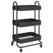 Gospodinjski voziček z jekleno konstrukcijo je močan in trpežen. Ta voziček za shranjevanje je idealen za odlaganje hrane, steklenic in drugih protrebščin, da bodo na dosegu roke. Fleksibilna kolesca zagotavljajo preprosto gibanje, dve kolesi pa imata zavore za stabilnost vozička.