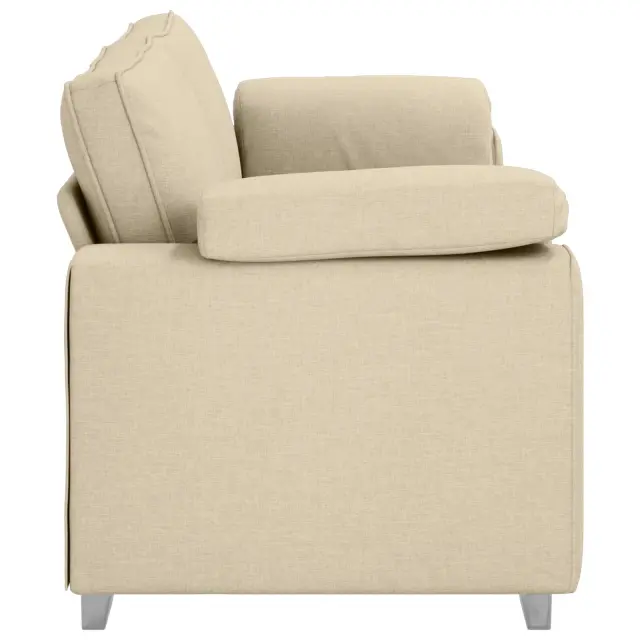 Ta moderna 3-sedna zofa je odlična izbira za sodobne prostore, z eleganco in udobnostjo. Njena kremna barva prinaša prijetno vzdušje v dnevno sobo. Izdelana je iz kombinacije kovine in lesa, z mehko blazino, kar je odlična za druženje s prijatelji ali preprosto uživanje doma.