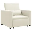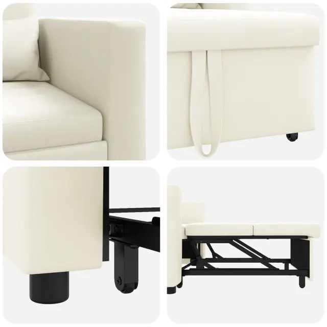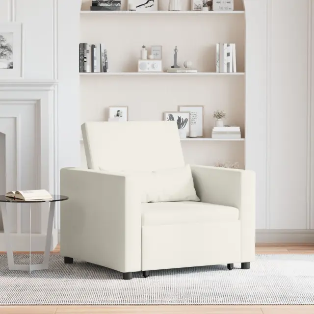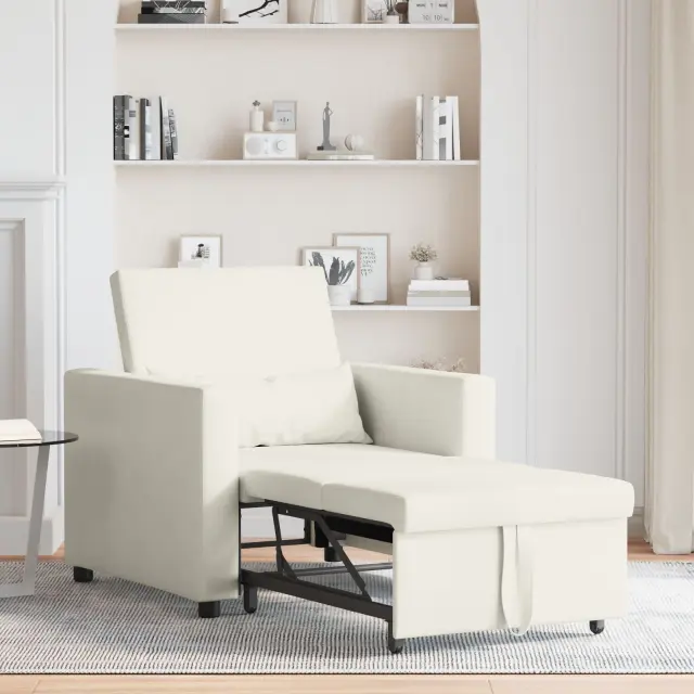 Ta priročen kremni naslanjač je udobno mesto za sedenje in raztegljiv kavč — top izbira za manjše dnevne prostore ali sobe za goste. Gladek kremni poliester doda šik pridih katerem koli dekorju in ponuja udobno mesto za počitek ali branje.