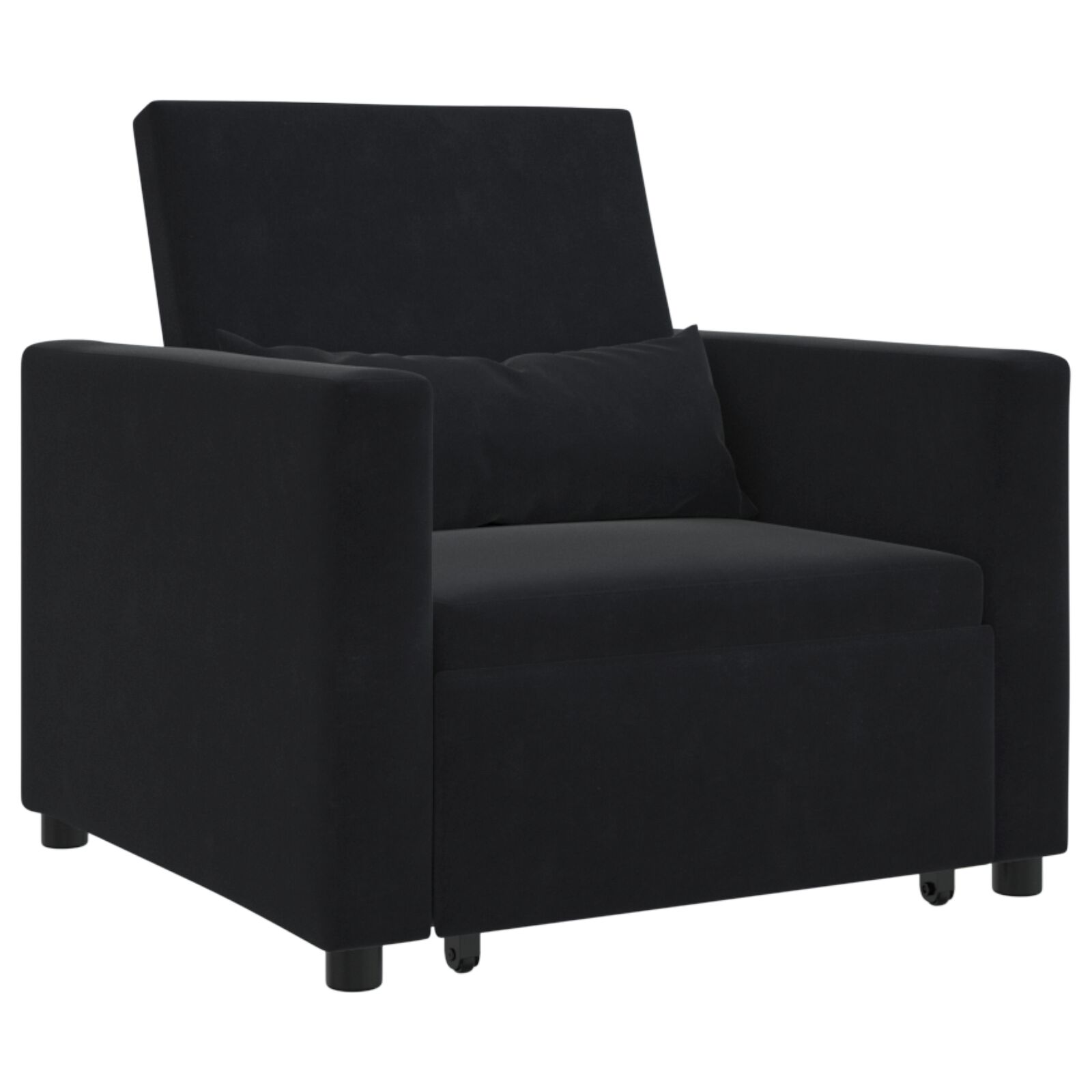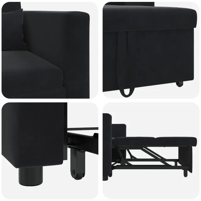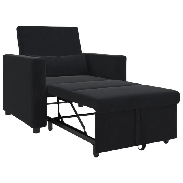 Ta praktičen naslanjač je udoben sedež, ki se hitro spremeni v raztegljiv kavč. Idealno za manjše dnevne prostore ali sobe za goste. Z gladkim črnim poliesterom doda moderno noto tvoji dekoraciji in nudita udoben prostor za branje ali sproščanje.