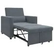 Ta praktični naslanjač je udobno sedišče in pameten raztegljiv kavč, kar je idealno za manjše prostore ali sobe za goste. Njegova elegantna temno siva tkanina daje sodoben občutek, hkrati pa zagotavlja prijetno izkušnjo.