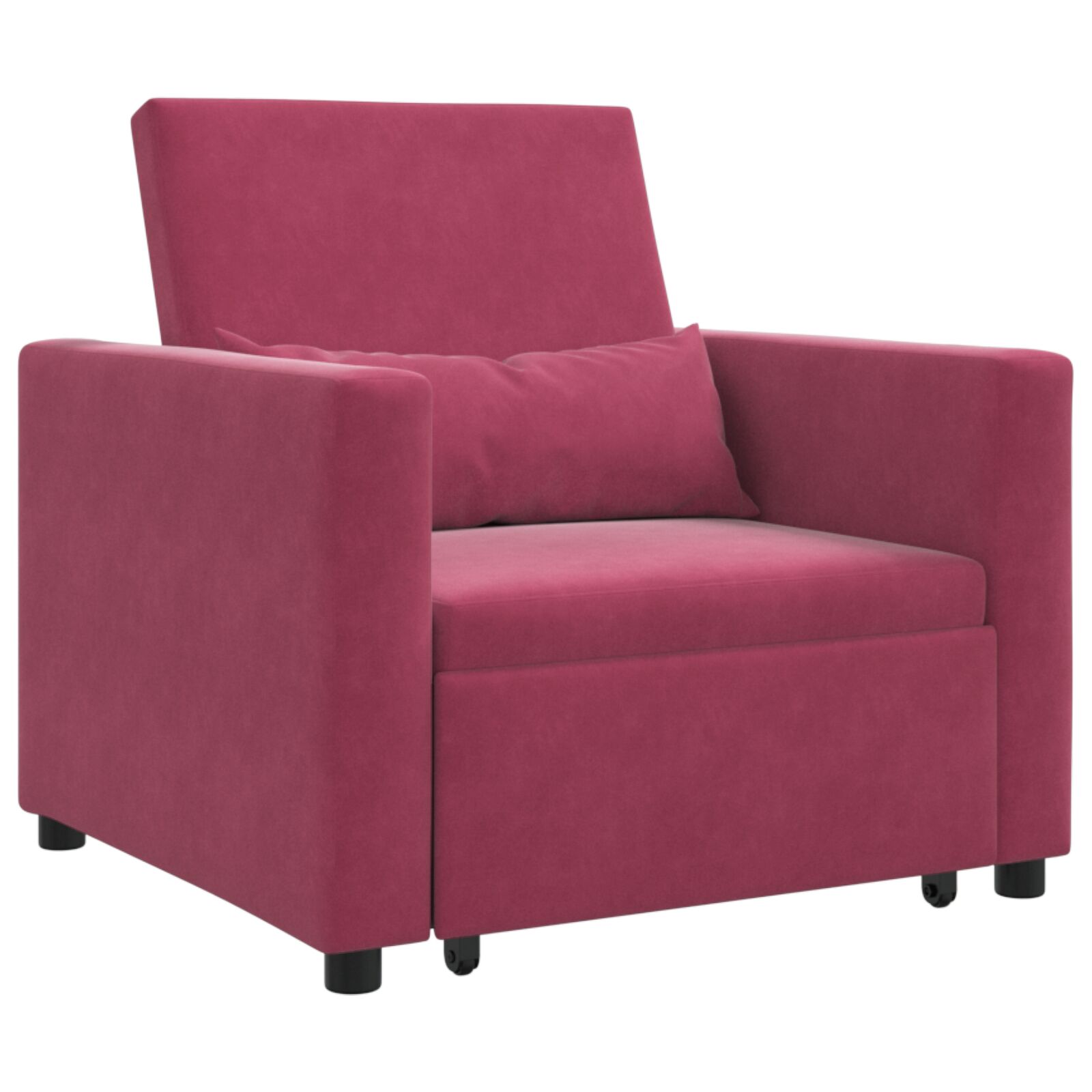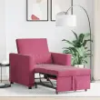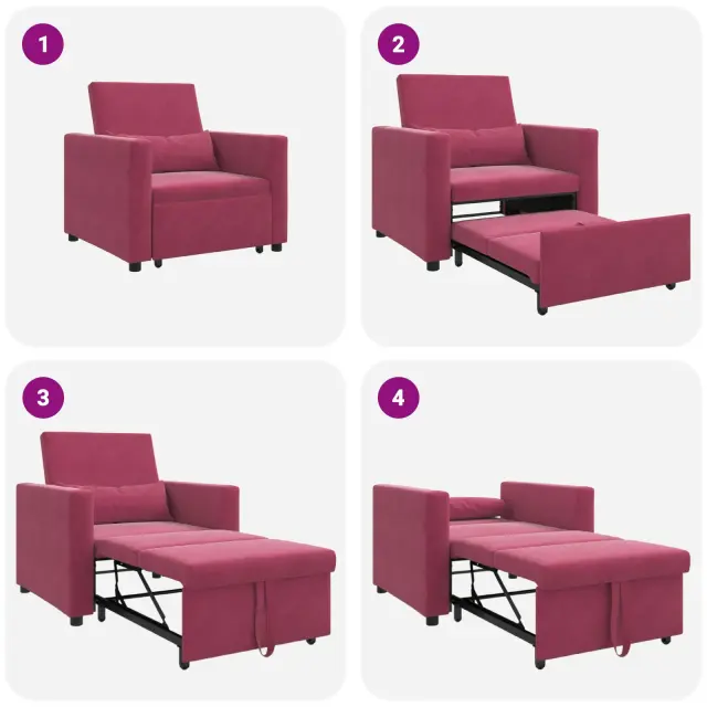Ta praktičen naslanjač je hkrati udoben sedež in raztegljiva postelja, kar ga dela idealnega za majhne bivalne prostore ali sobe za goste. Njegova gladka bordo poliester tkanina doda stilski pridih tvoji dekoraciji in predstavlja udobno mesto za branje ali preprosto sproščanje.