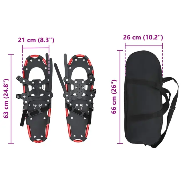 • Nastavljiva dolžina Prilagodite te snežnike svojemu koraku in udobju z enostavno nastavljivo mehaniko dolžine. Osvežijo se lahko od kompaktnega shranjevanja do polne širine. Ta funkcija dodaja plast personalizacije in zagotavlja večje zadovoljstvo na vsaki zimski pustolovščini.
