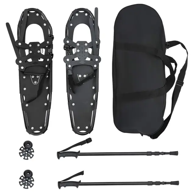 vidaXL 3 V 1 snežni čevlji s pohodniškimi palicami Črna 78,5 x 22 cm
