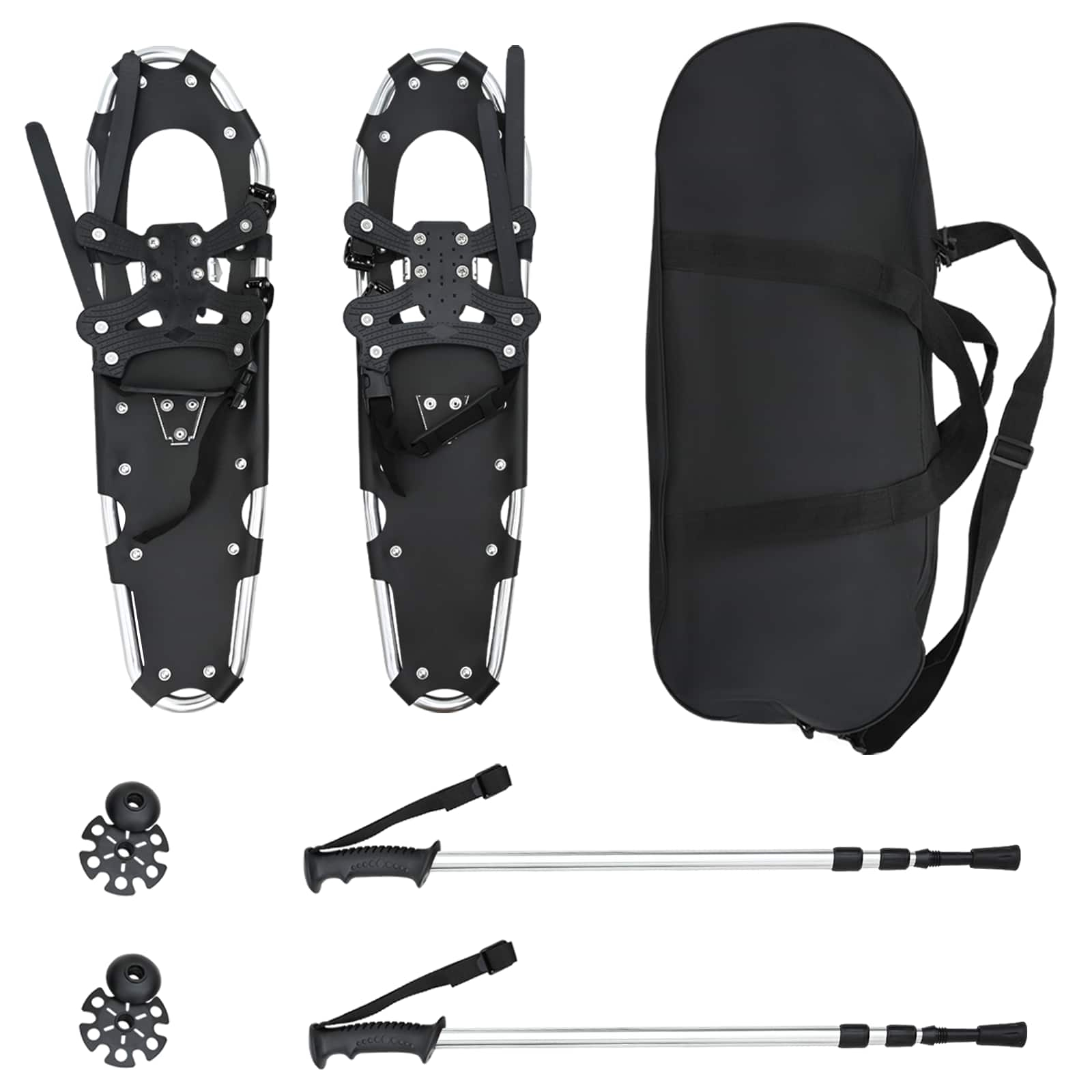 vidaXL 3 V 1 snežni čevlji s pohodniškimi palicami Srebro in črno